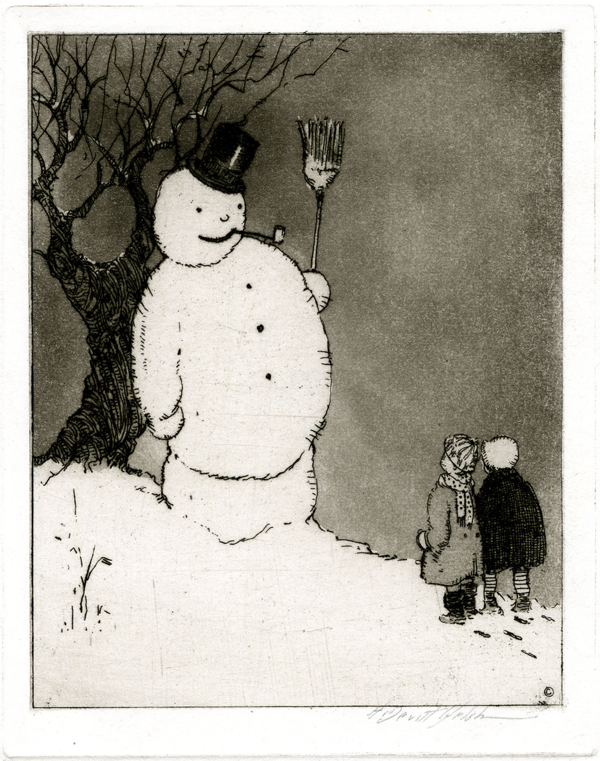 His wife squinted her eyes in the growing dark, quickly crossed the yard and snuggled herself in her husband’s arms. She studied the snow figures behind her youngest son and his friend, frowned a little and then bit away a smile. “I don’t know what you mean, dear,” she said innocently. “What’s the matter with it?”