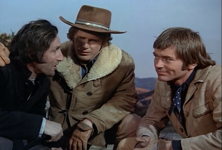 Rutledge called out, louder than he needed to, “Who’s that, then?” As he had intended, the man in the house came out hastily, pistol in hand, ordering Heyes to drop his gun. Before he finished the sentence, though, his own handgun flew from his grip. In his rush, he’d failed to see Kid Curry still in the shadow of the house.