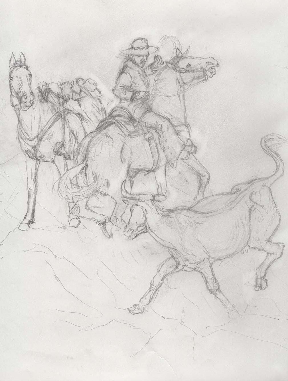 He couldn’t see Bob, but he could hear gunfire and knew they were not far ahead of him. Then the shooting stopped, and all he could hear was the snapping of branches, the bellowing of cows, and the shouts of men as the stolen herd was pushed on into the distance.